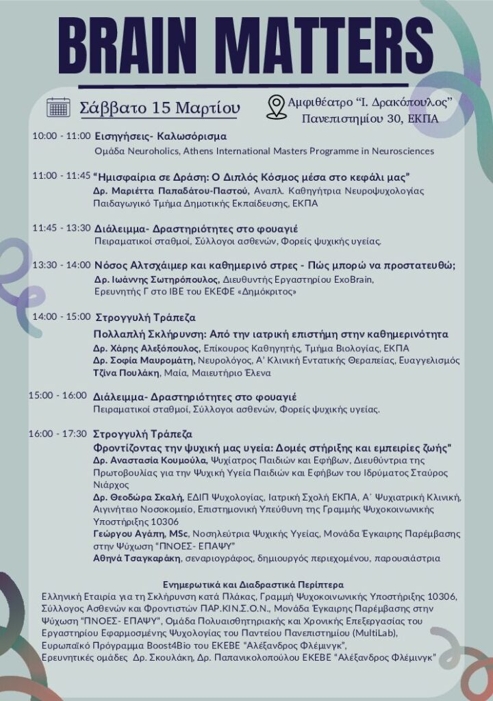 These events are organized by the Neuroholics, a vibrant outreach team founded by students of the Athens International Master’s Programme in Neurosciences, and are designed to engage the public in creative, interactive, and accessible ways.